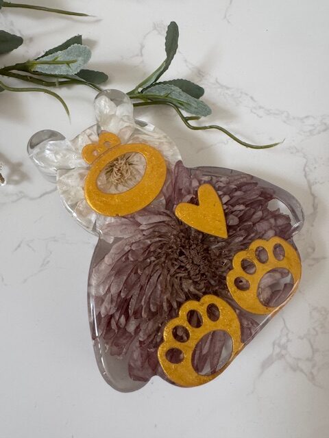 Our Forever Resin Bear is beautifully crafted as a unique and heartfelt gift. Perfect for preserving flowers from special occasions—whether Valentine’s Day, birthdays, or the birth of a newborn. Designed to hold small to medium blooms, it transforms them into a lasting keepsake. Optional colour pigment can be added to enhance the nose, heart, and feet, creating a truly personalised and charming display.