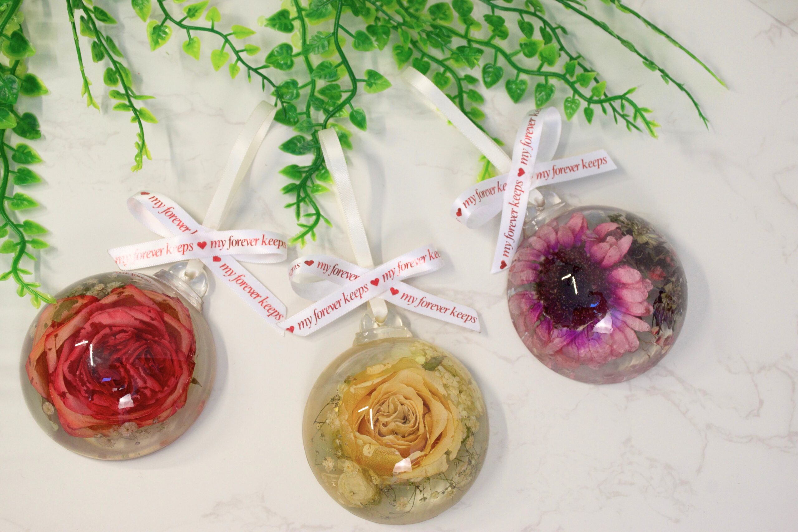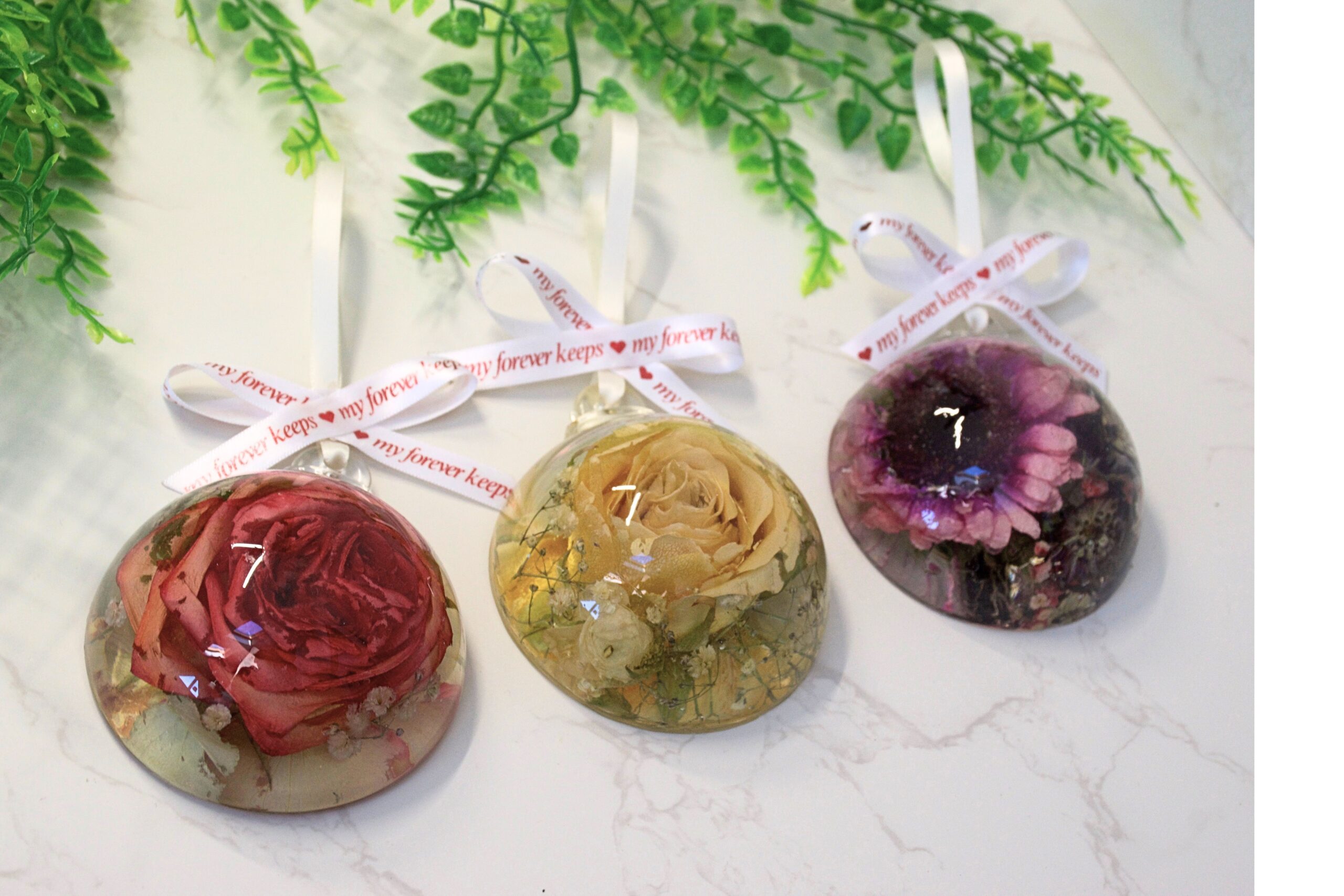 Our resin bauble is a must-have for preserving life’s special moments. Perfect for weddings, anniversaries, Christmas, memorials, or other cherished occasions, it beautifully showcases small flowers or a single medium bloom. An unforgettable gift and timeless decorative heirloom, it adds charm and sentiment to any home.
